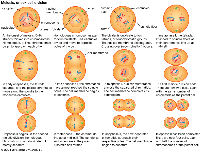 Well to answer that, you need to understand a little bit more about how the chromosomes behave during meiosis. I am not going to talk through all the various stages of meiosis (life is too short and you can read the diagram below) but there is a key event that happens in meiosis that never happens in mitosis…..