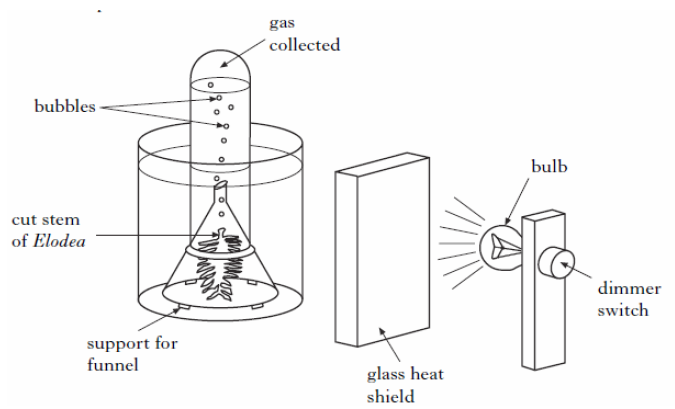 Well you could collect the gas produced over a long period of time and measure its volume with a gas syringe. This might sound more accurate than counting bubbles but in fact it is a less reliable way as you would have to leave the set up for a long time and variables might change. So it is fine to assume that the bubbles produced are oxygen and that every bubble is the same volume: if you do this, the rate of production of bubbles is directly proportional to the rate of photosynthesis in the Elodea plant.