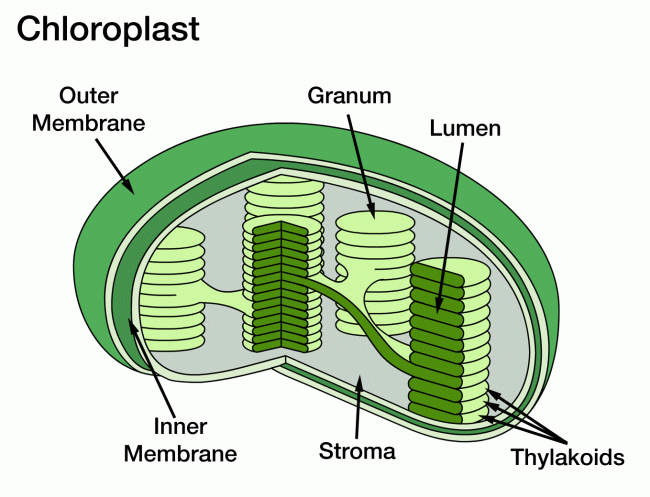 - Chloroplasts – mesophyll cells and guard cells contain many chloroplasts. These organelles contain the light harvesting pigment chlorophyll and are where all the reactions of photosynthesis occur