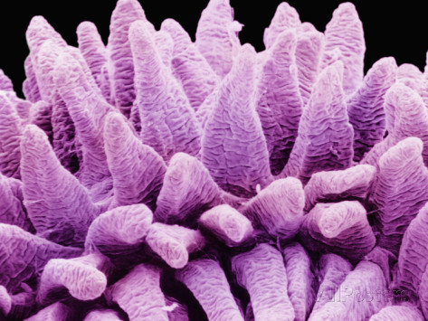 The main idea here is that the lining of these parts of the small intestine has a very large surface area. The intestine is long, the wall is ridged and the lining (called the epithelium) has many thousands of tiny projections called villi. Each villus is 1-3mm long but the effect is to increase the surface area for absorption by many hundreds of times.